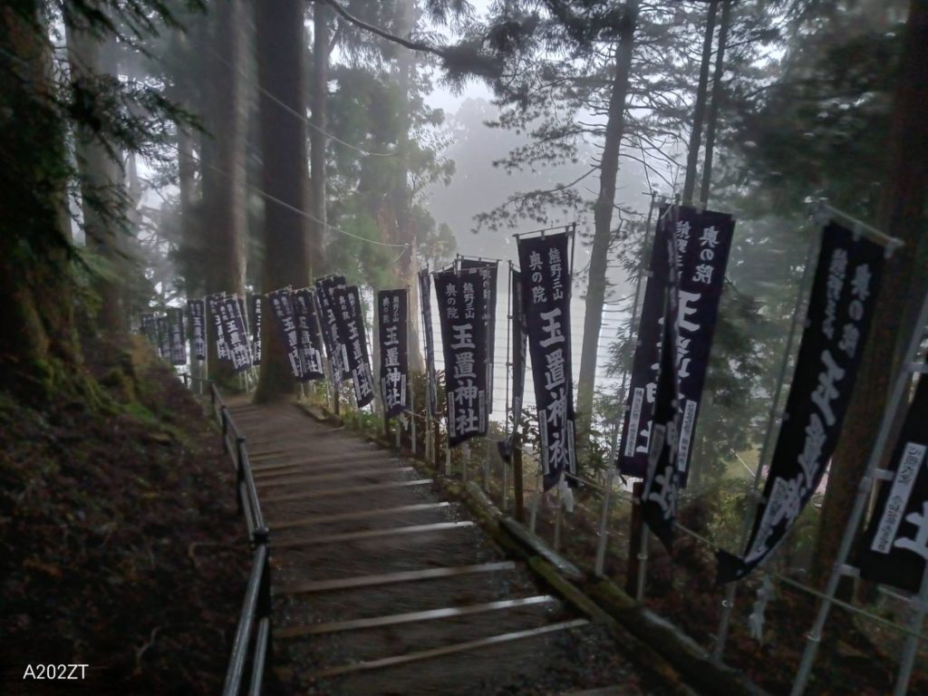 玉置神社の 玉石社(たまいししゃ) は、玉置山の中でも “最も神秘的” といわれる場所のひとつで、社殿を持たず「石そのもの」を神として祀る古代の自然崇拝の形 が残る、とても貴重な聖所です。このように階段をひたすらあがっていきます。