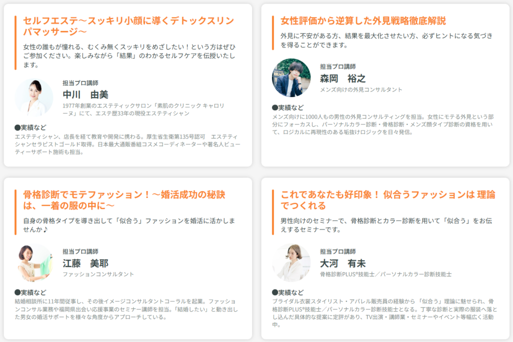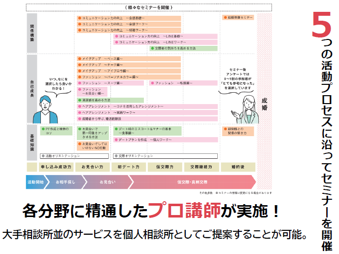 5つの婚活力を高めて活動をスムーズに!様々なセミナーを開催中!