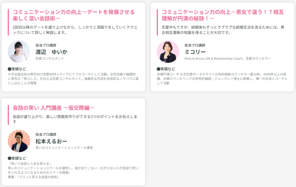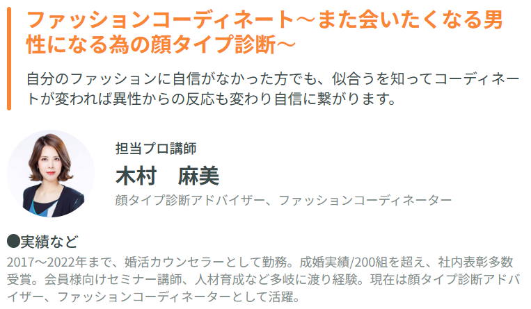 自身の魅力を引き出し、婚活スキルをアップさせる!婚活はまず自分自身を知ることから始まります。自分自身のアピールポイントを知り、プロフィールに表現できれば、それがお相手とのマッチングのキーとなります。 自分自身では知りえていない魅力をTMSスクールでアップしませんか。