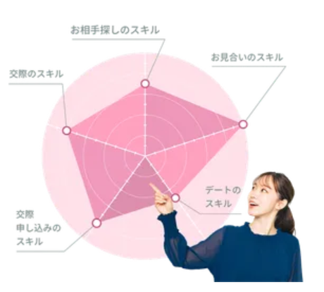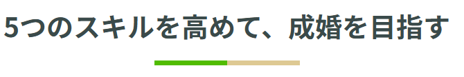 弊社が加盟している【TMS】全国結婚相談事業者連盟は創業35年です。TMSでは、会員様がより成婚しやすくするためにはどうすればよいか、ノウハウをブラッシュアップしてまいりました。「お相手探し」から「成婚」まで辿り着くために、大きく分けて5つの婚活力が必要です。皆様がご利用されているアプリの下の方にこういったページがあります。こちらからご利用いただけます↓