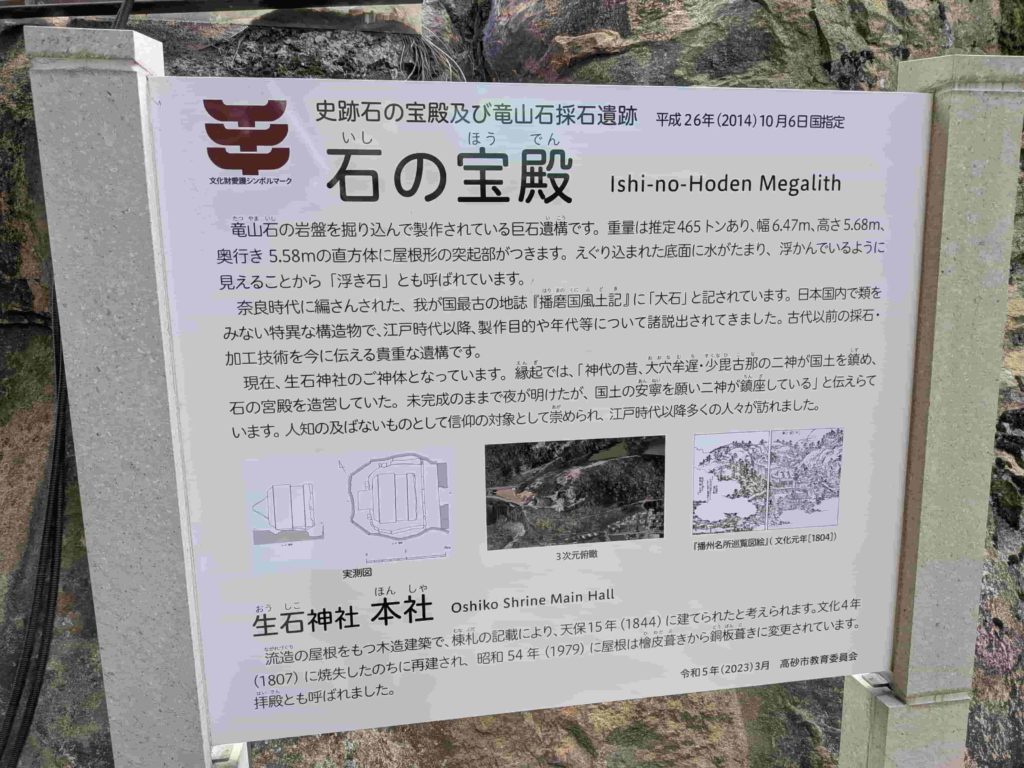 兵庫県高砂市にある生石神社(おうしこじんじゃ)。ここは「派手さ」よりも、「静かな迫力」が心に残る神社です。特に有名なのが、巨大な石造物である石の宝殿(いしのほうでん)。目の前に立つと、写真では伝わらない圧倒的なスケールに思わず息をのみます。