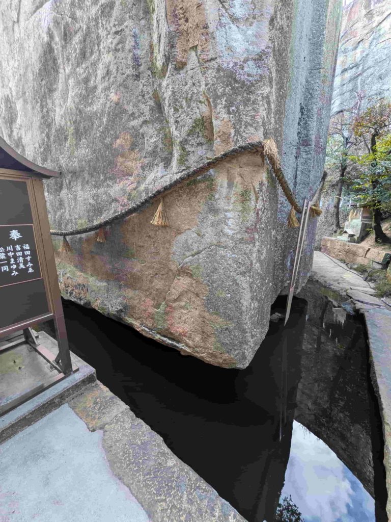 巨大な岩がまるで宙に浮いているように見える、不思議な巨石。この石の宝殿は、「日本三奇(にほんさんき)」のひとつに数えられています。