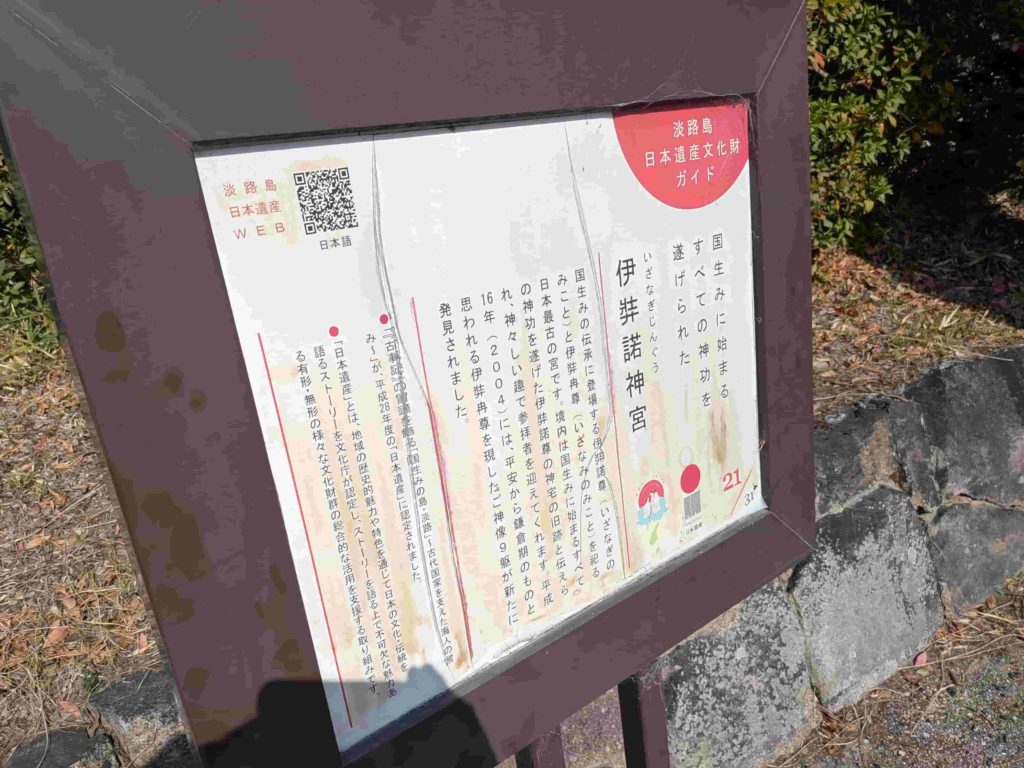 社伝によると、伊弉諾尊は神生みを終えた後、淡路島で余生を過ごし、この地に祀られたと伝えられています。
