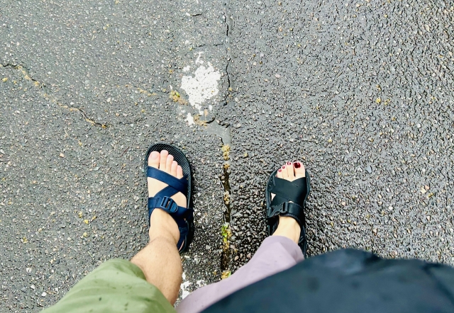✅靴は水濡れしにくいタイプを選び、泥はねも注意!